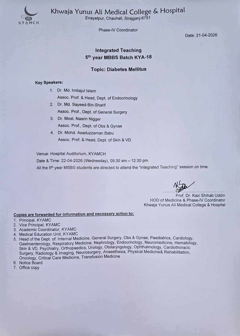 Organized by: Department of Pathology, Khwaja Yunus Ali Medical College Venue: Balighughri Bishwanabi (Sa.) Hafizia Madrasah & Orphanage, Sirajganj